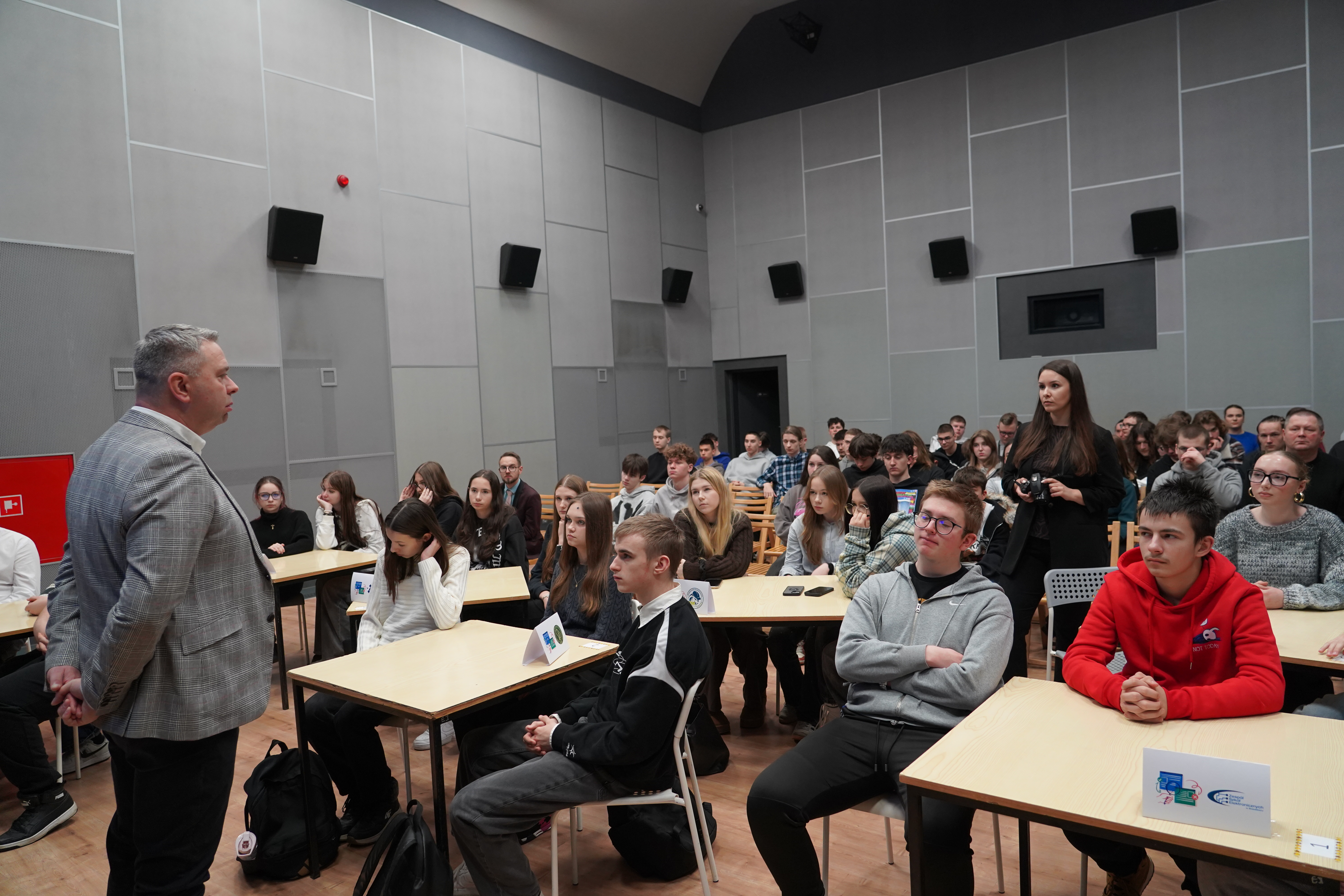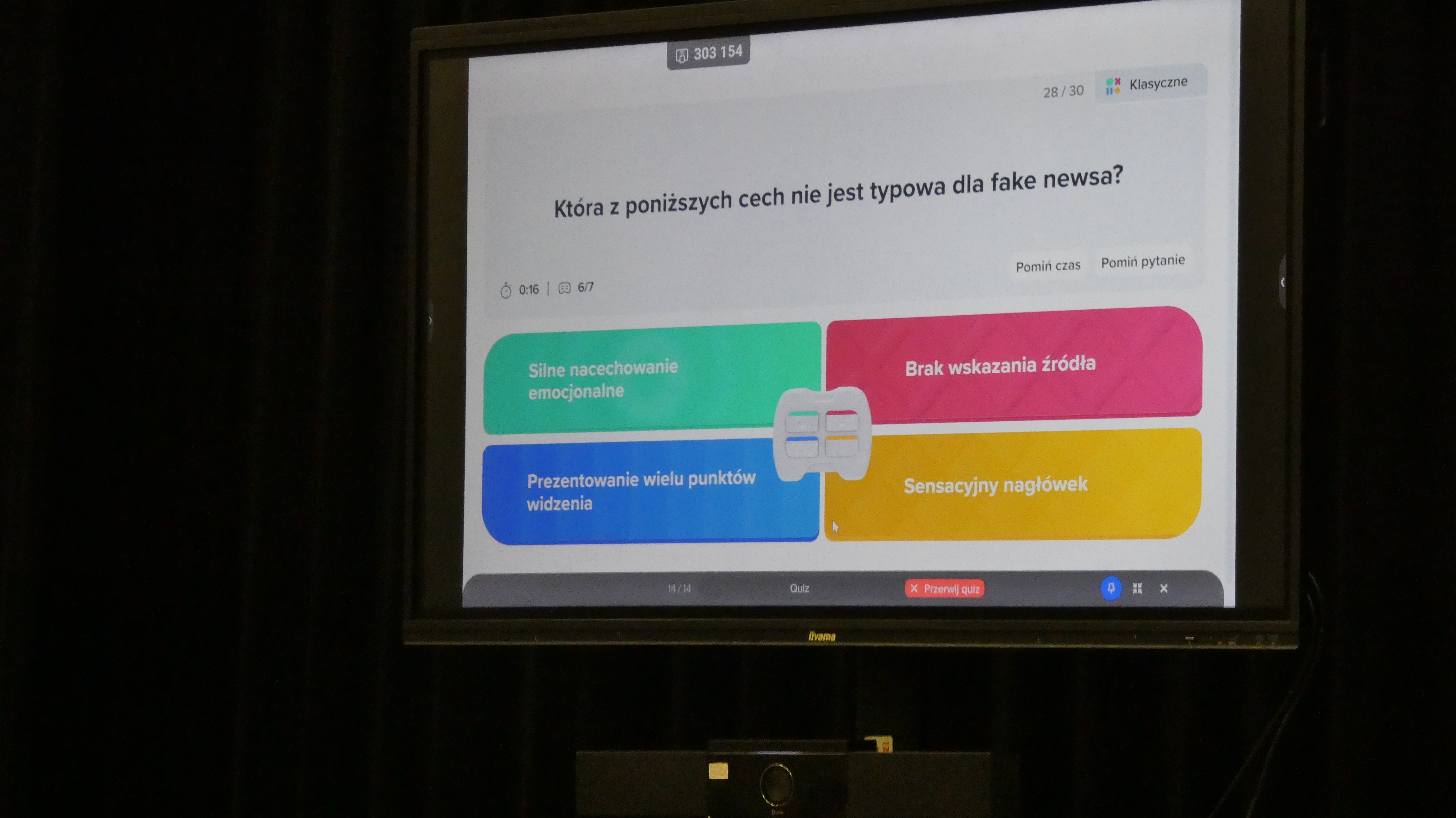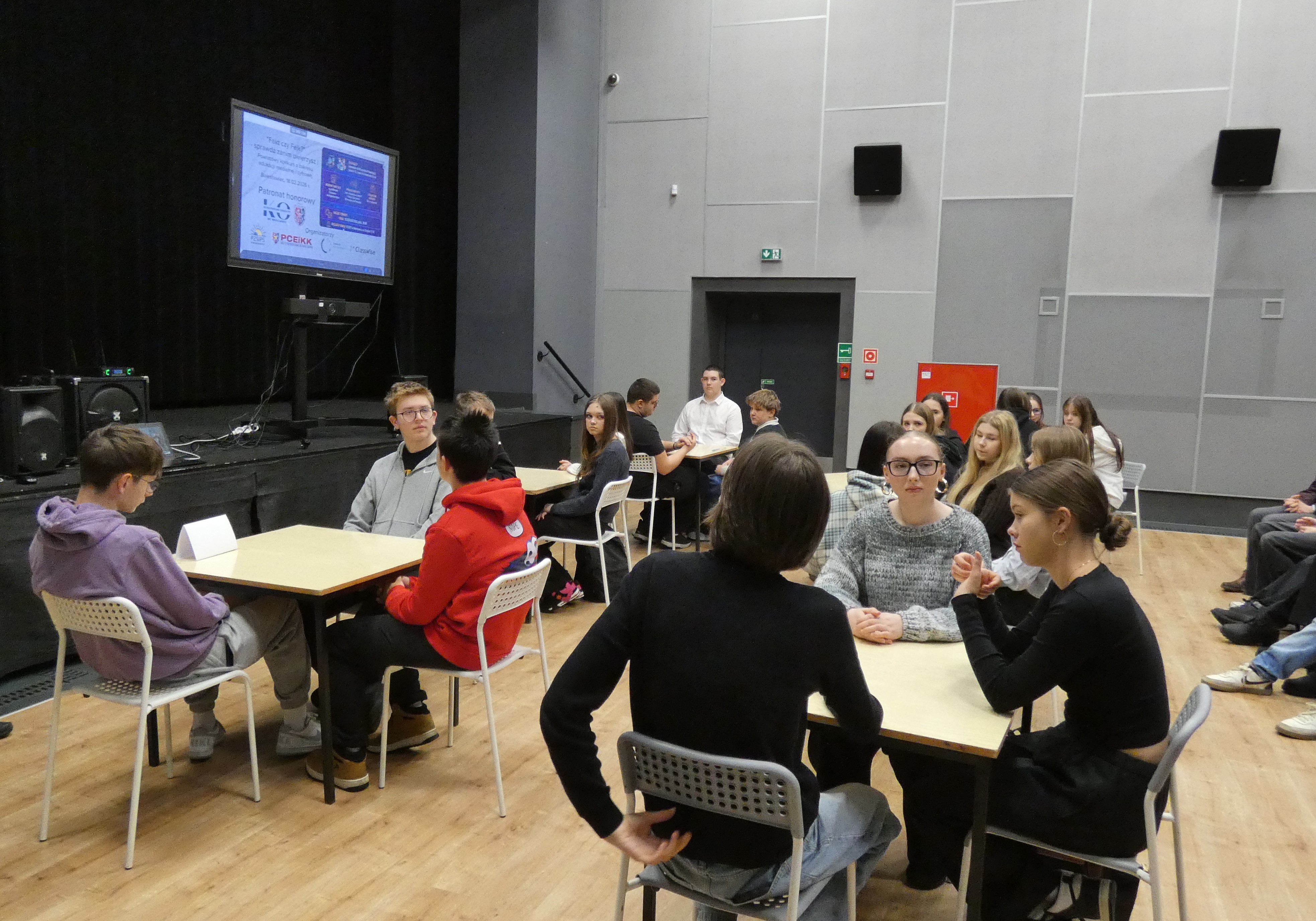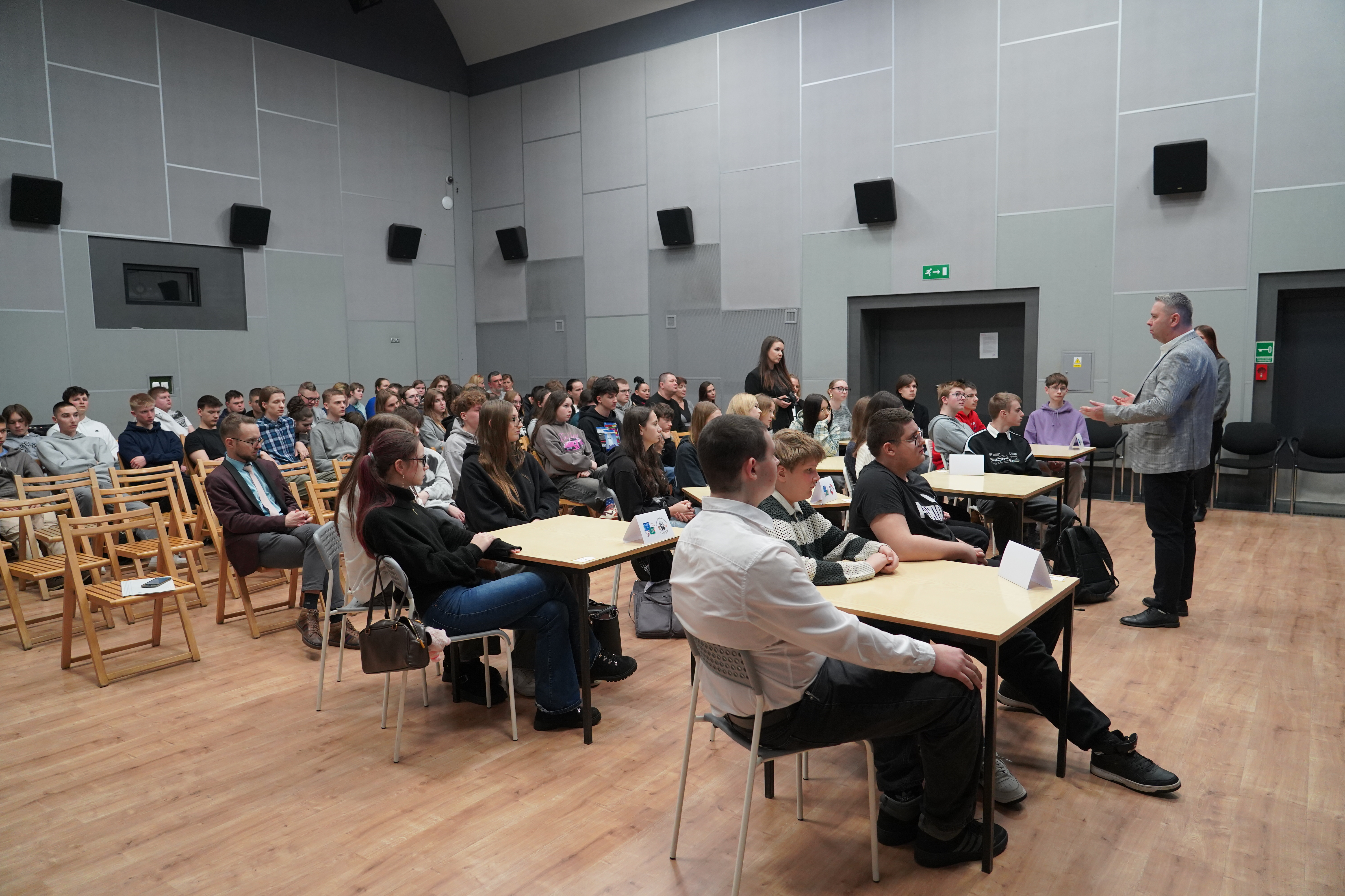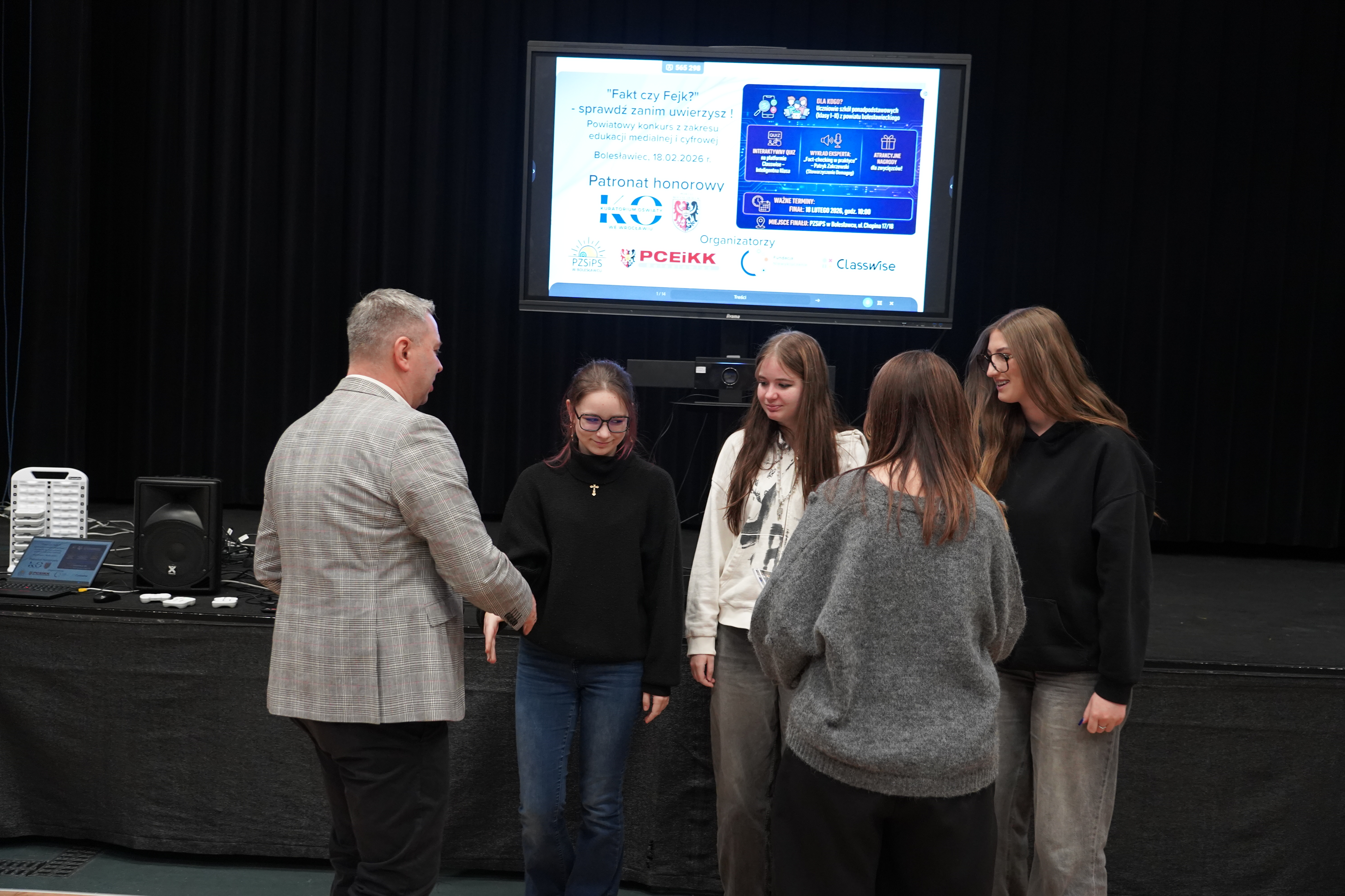 Po zakończonym quizie młodzież wraz z opiekunami miała okazję wysłuchać wykładu Wiceprezesa Stowarzyszenia Demagog odpowiedzialnego za obszar edukacji i szkoleń pana Patryka Zakrzewskiego, który wyposażył uczestników w narzędzia pozwalające oceniać wiarygodność źródeł, a także rozpoznawać mechanizmy manipulacji.
