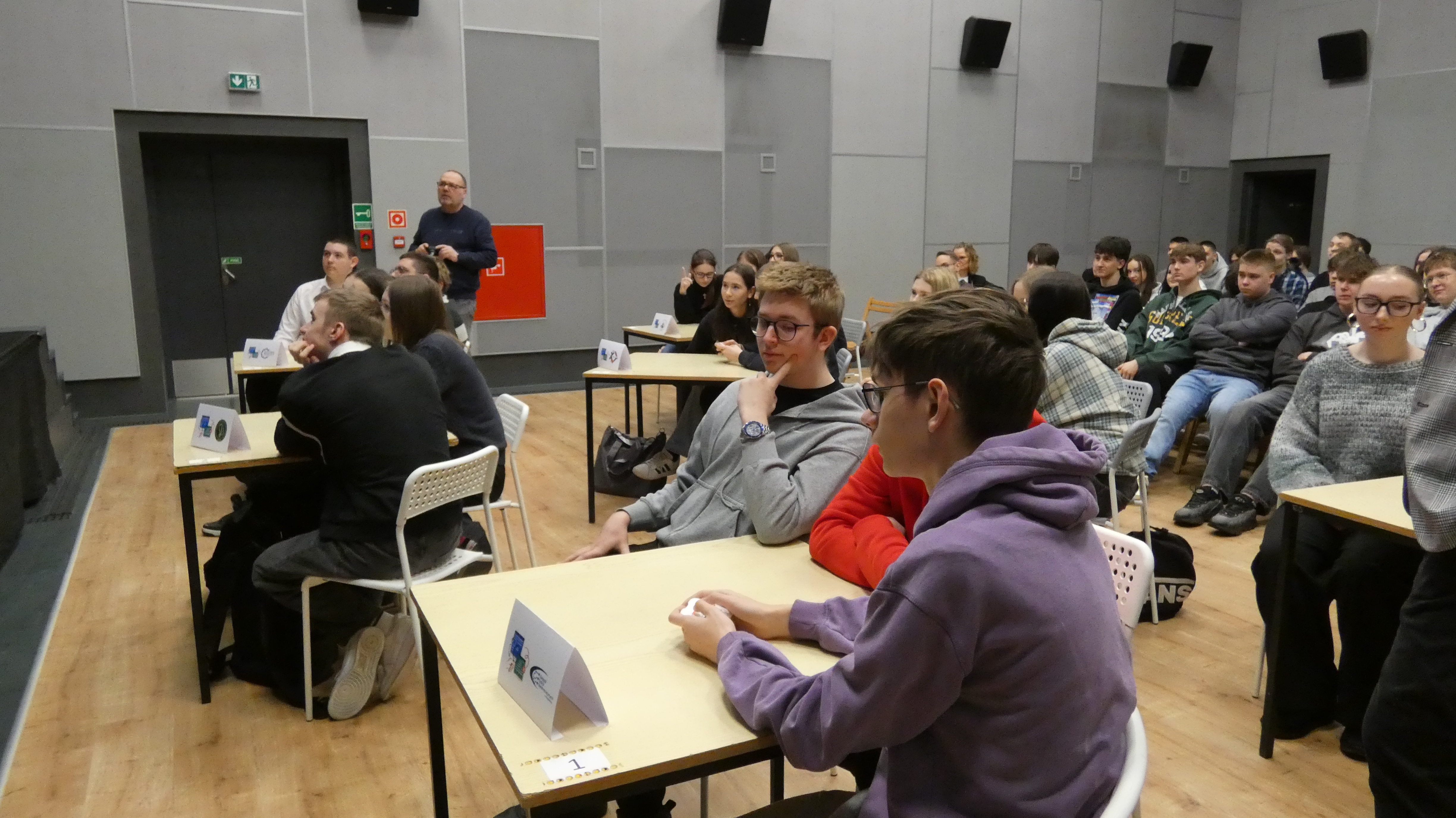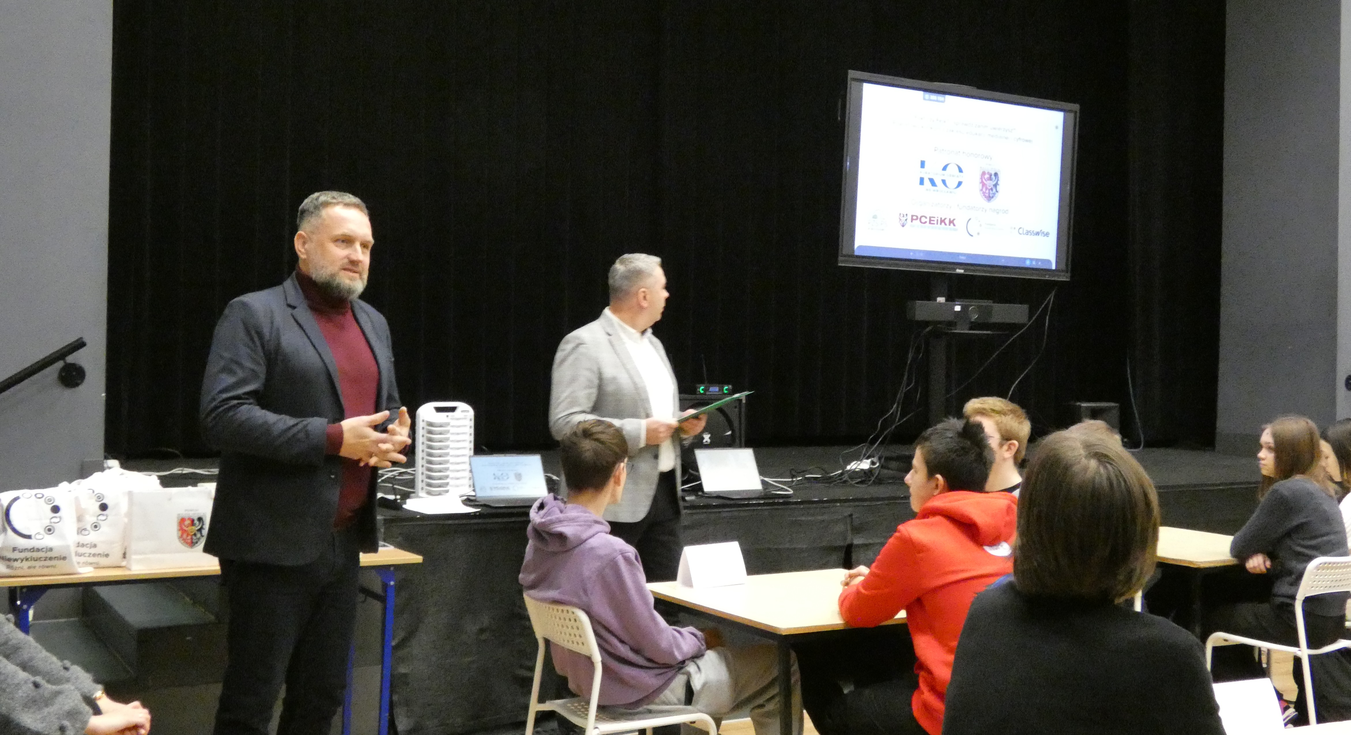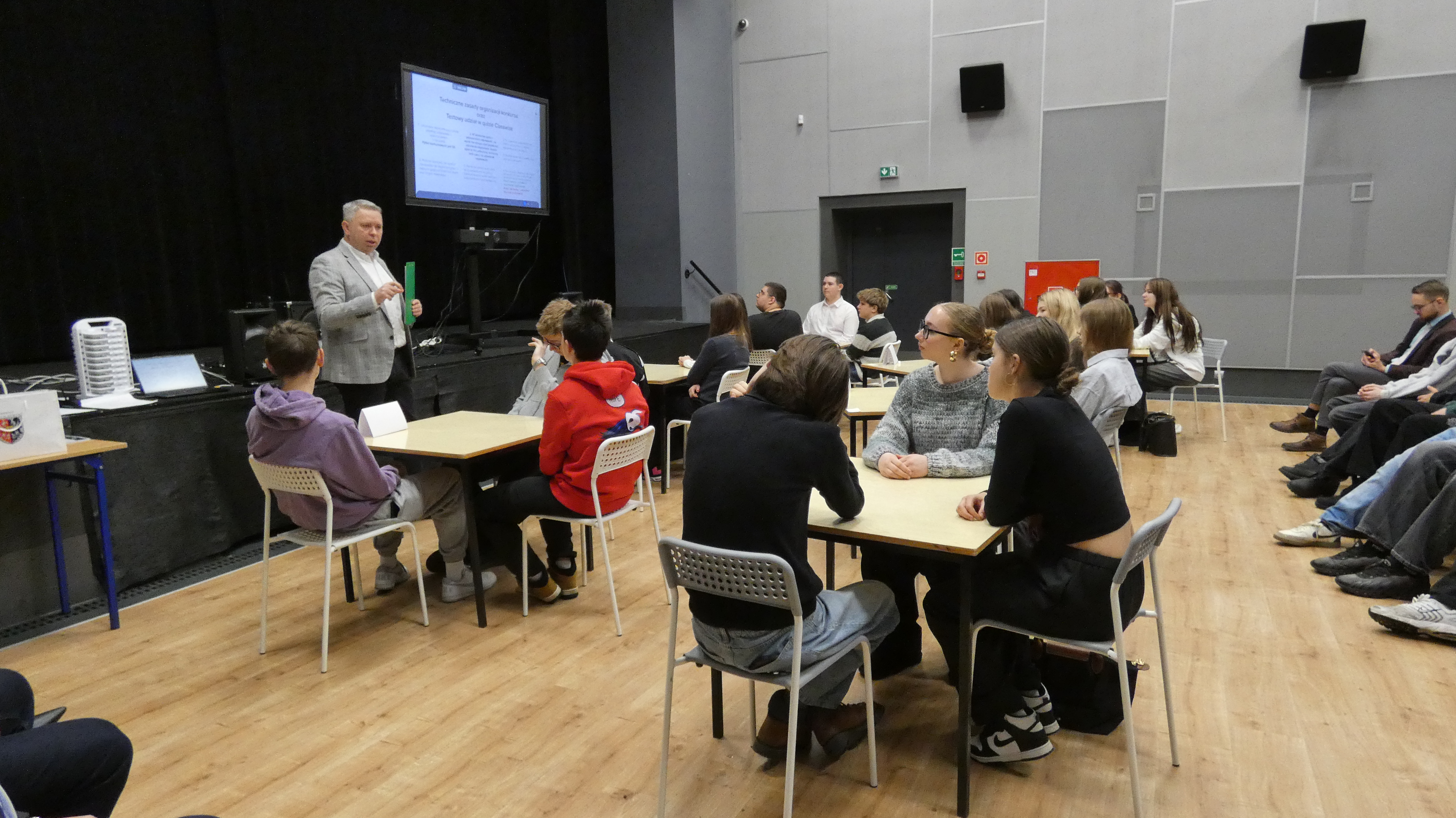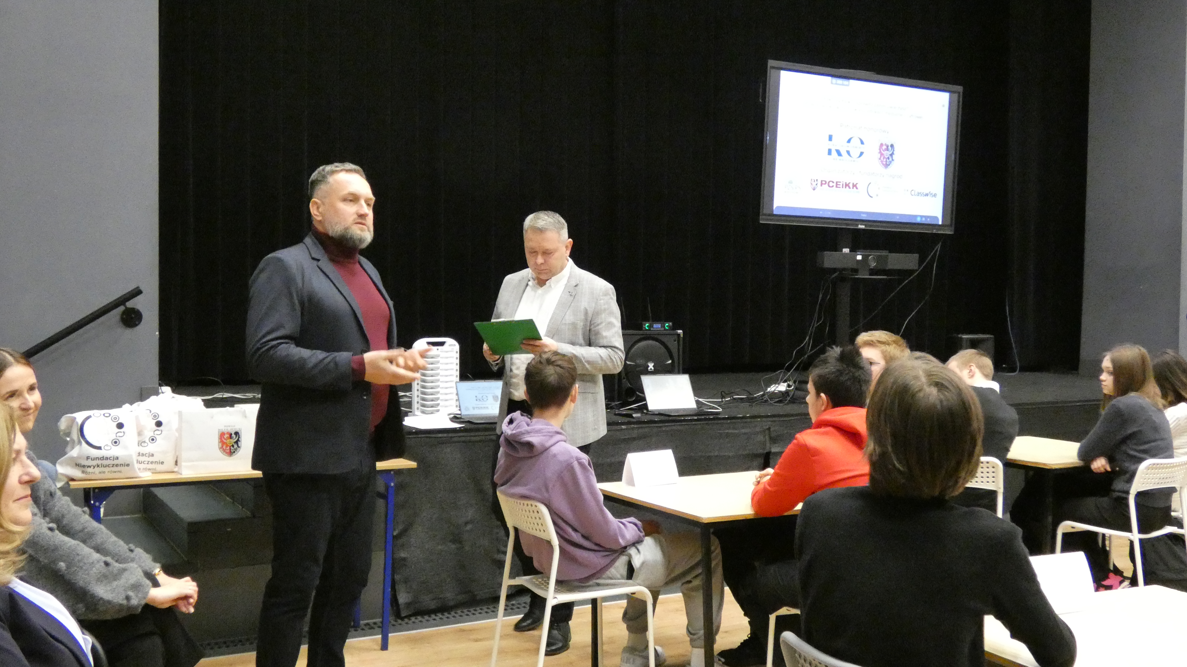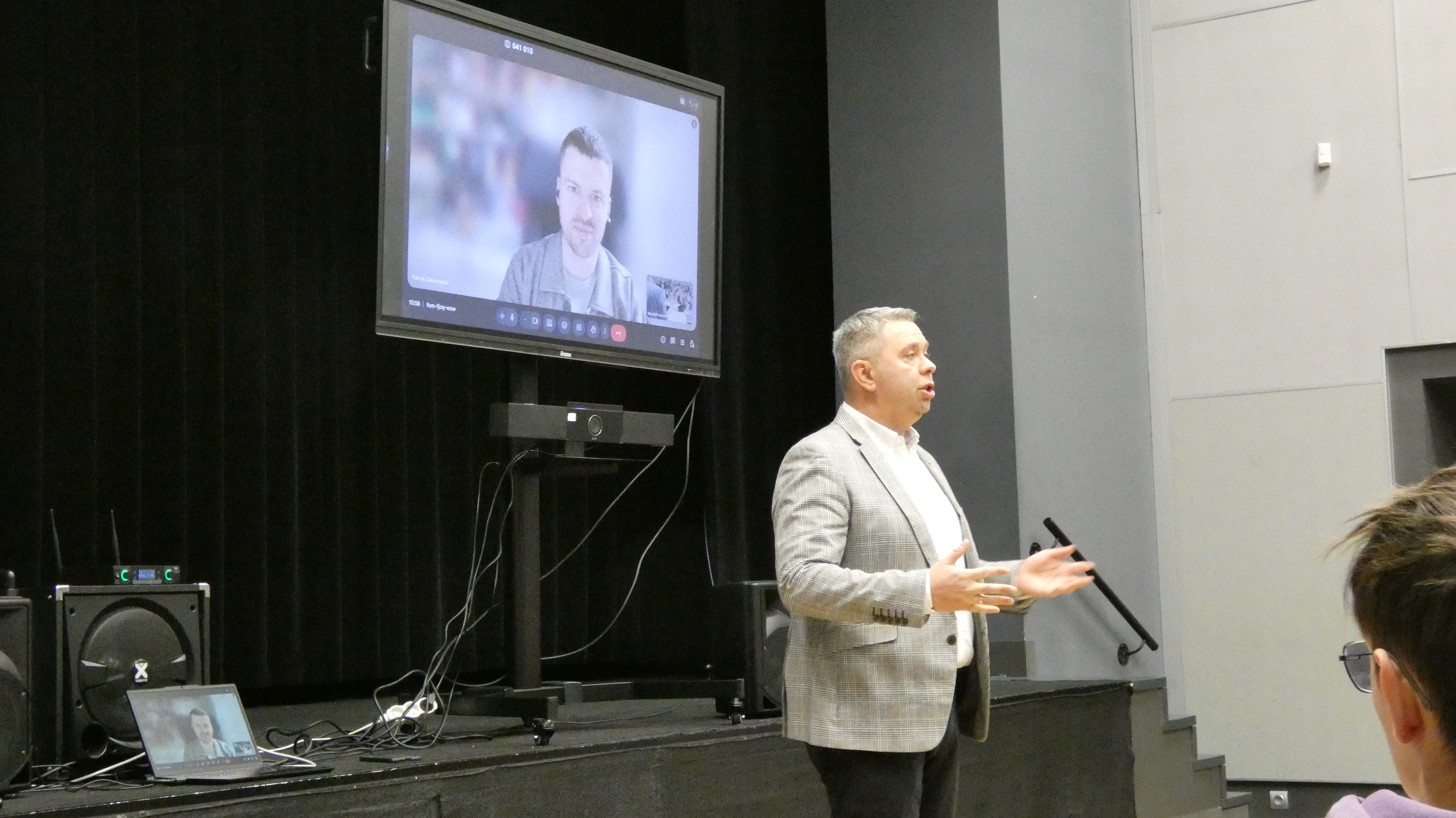 Po zakończonym quizie młodzież wraz z opiekunami miała okazję wysłuchać wykładu Wiceprezesa Stowarzyszenia Demagog odpowiedzialnego za obszar edukacji i szkoleń pana Patryka Zakrzewskiego, który wyposażył uczestników w narzędzia pozwalające oceniać wiarygodność źródeł, a także rozpoznawać mechanizmy manipulacji.