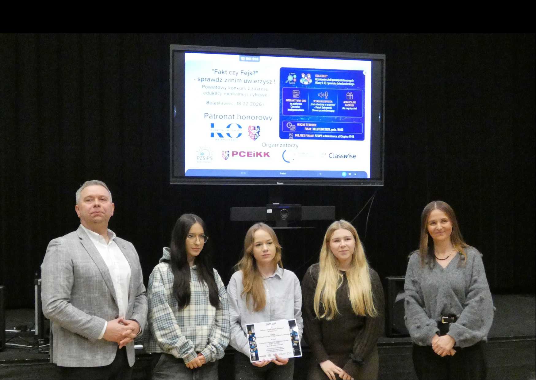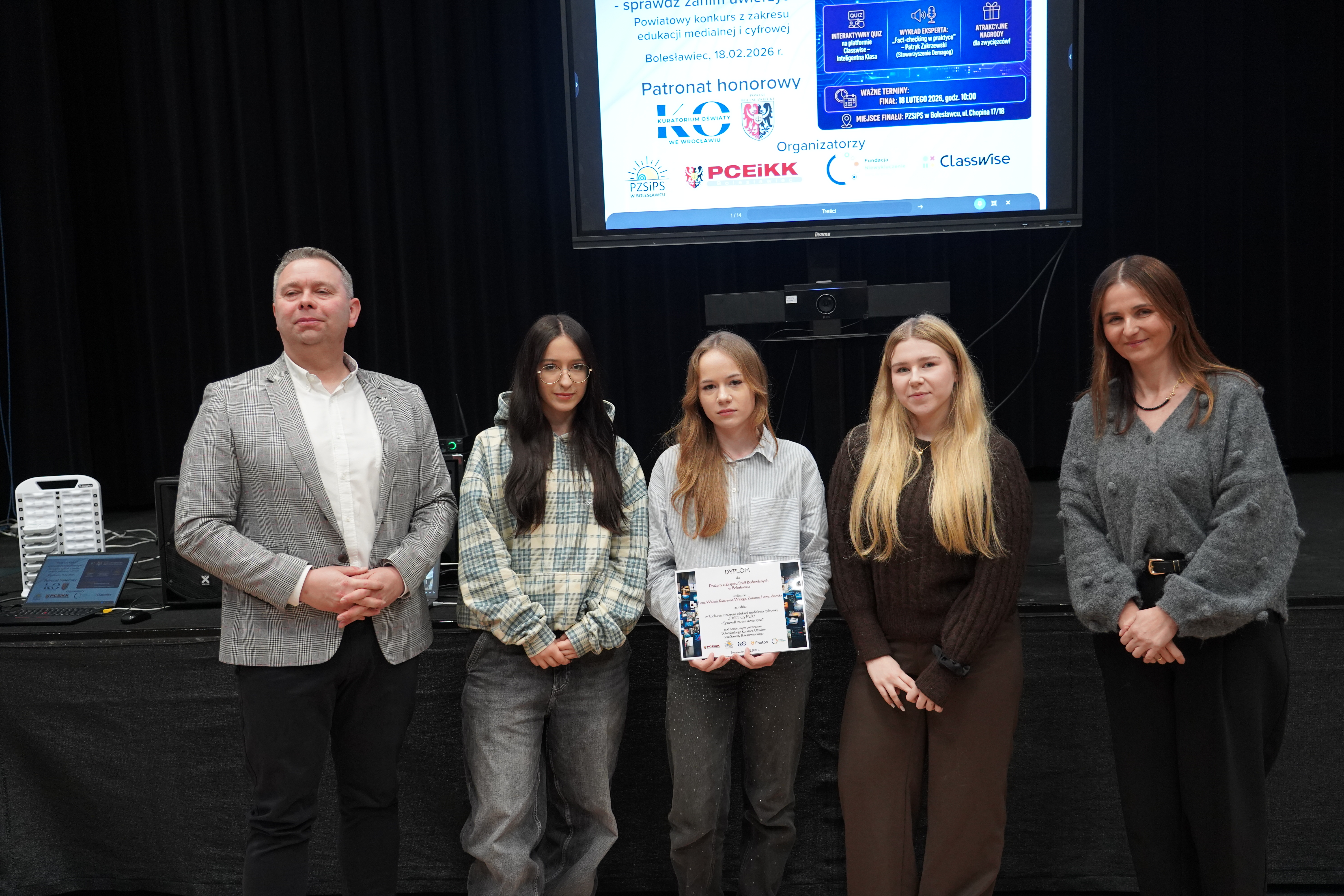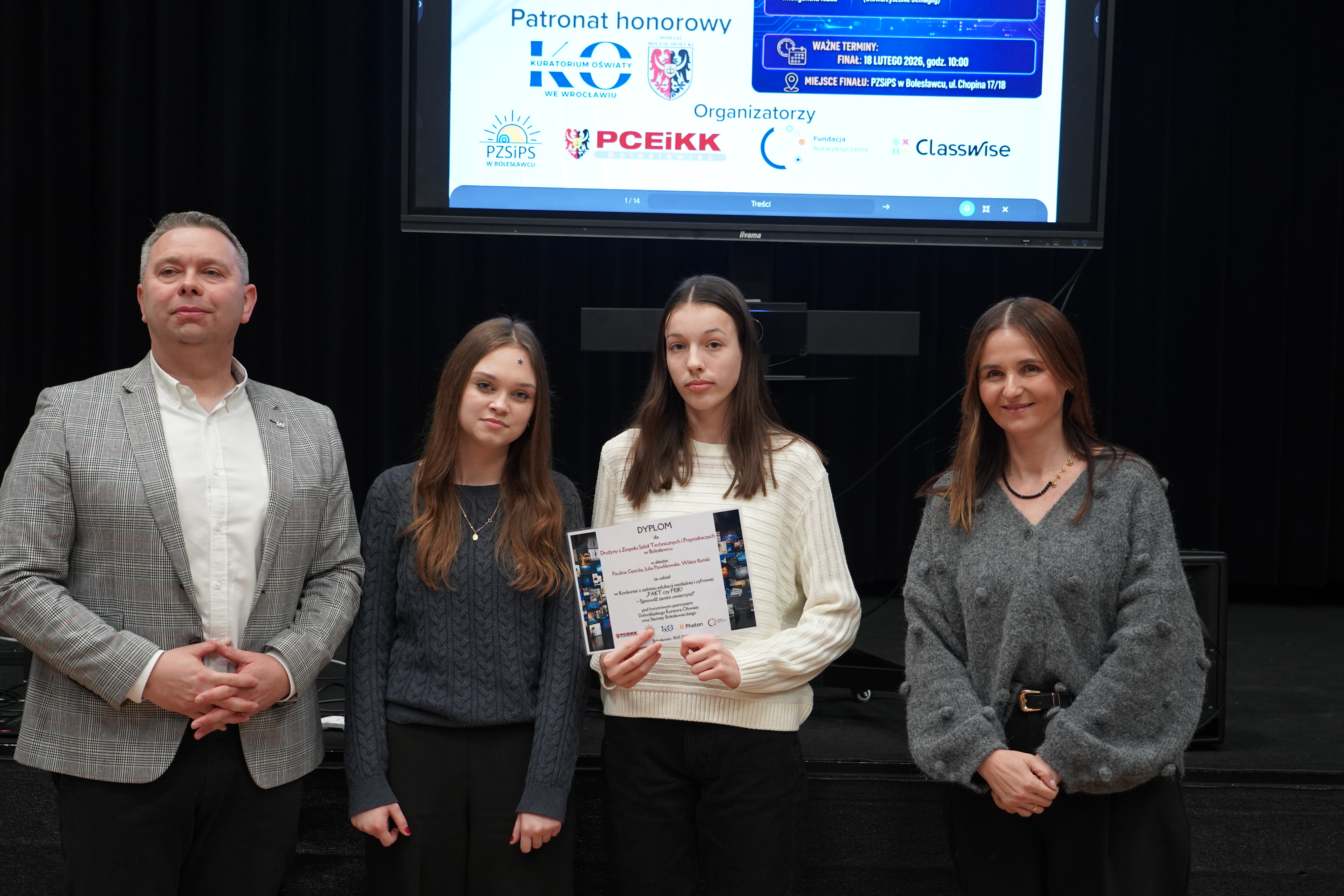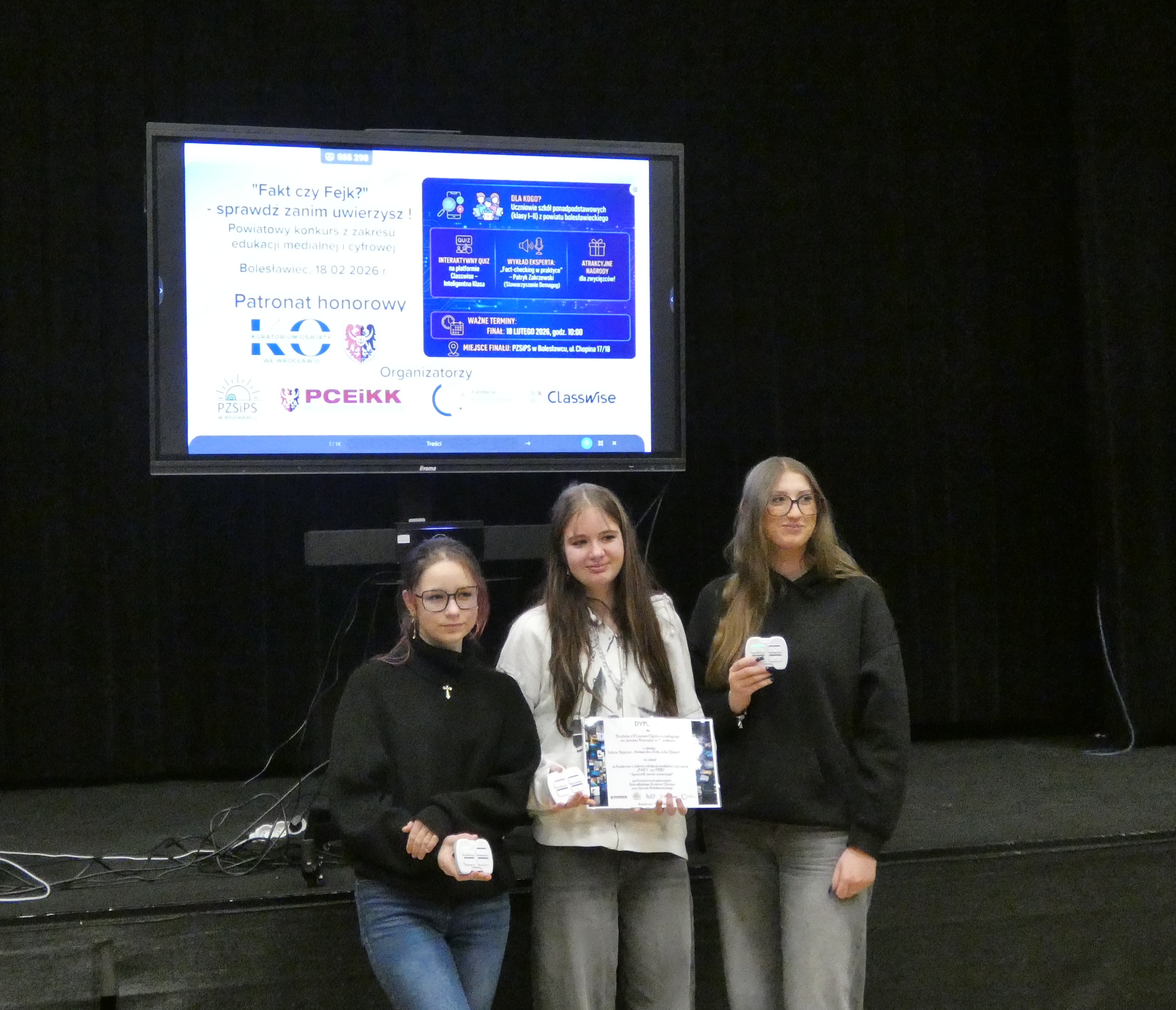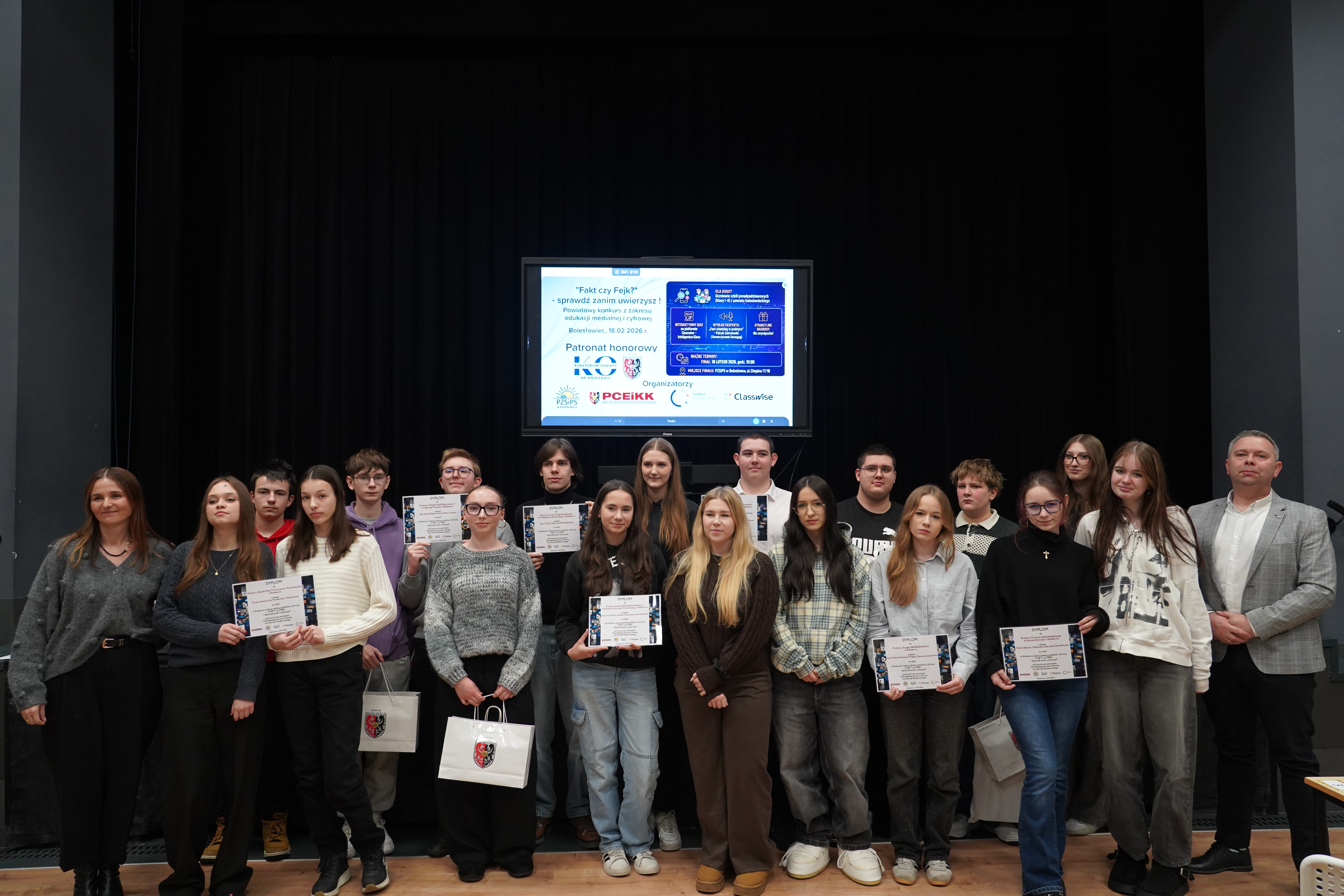 Promowanie higieny cyfrowej i bezpiecznego poruszania się w sieci, a także rozwijanie umiejętności krytycznej analizy informacji dostępnych w Internecie to jeden z głównych kierunków polityki oświatowej państwa w roku szkolnym 2025/2026 ogłoszonych przez Ministerstwo Edukacji Narodowej. W związku z powyższym Powiatowe Centrum Edukacji i Kształcenia Kadr w Bolesławcu oraz Powiatowy Zespół Szkół i Placówek Specjalnych w Bolesławcu we współpracy z Photon Entertainment oraz Fundacją Niewykluczenie zorganizowali projekt pod nazwą: „Fakt czy fejk? – Sprawdź zanim uwierzysz!”.